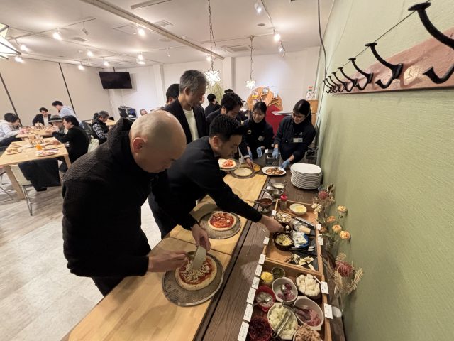 夕食は、アドベンチャーワールドの社員食堂をお借りしてピザパーティ!