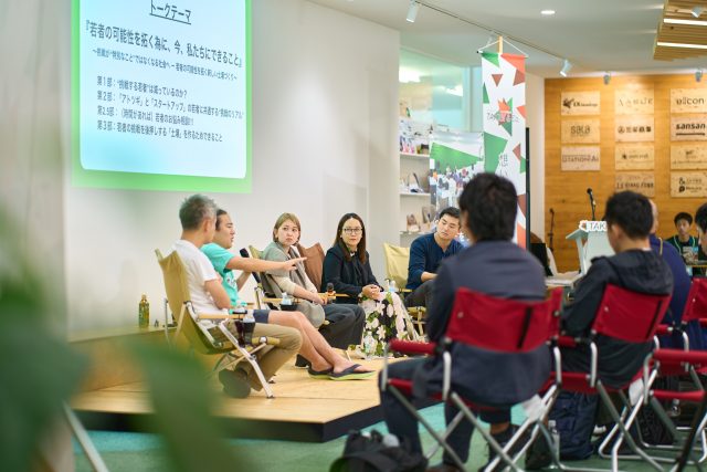 やろまいの秋元さん、リディラバの安部さん、マスヤ味方店の栗林さん、iSGSの佐藤さんにて「若者の可能性」をテーマにトークセッション。