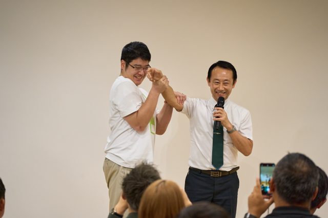 トークセッション後には江崎知事がジャケットを脱いで合気道を披露する一幕も!