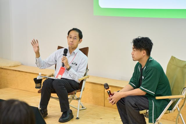 ラウンドテーブル後、立命館大学の久保田教授と三星グループの岩田によるコメントをトークセッション形式で実施。産官学が連携するタキビコ。